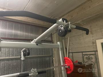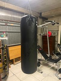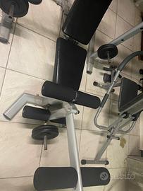 Vendo panca pesi multi funzione completa di dischi pesi di varie dimensioni per un totale di 100 kg, in più panca addominali e sacco pugile da soffitto con guantoni