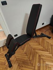 Vendo panca multifunzione come nuova, usata pochissimo. Possibilità di fare petto con tutte le inclinazioni possibili. Accessorio per bicipiti (panca Scott) e per lombari.