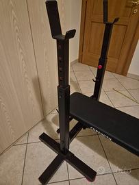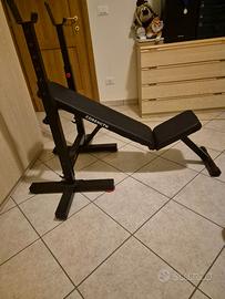 Vendo per inutilizzo set completo composto da panca piana che diventa anche recrinabile a 45 gradi brand CORENGHT( usata veramente poco le foto sono conferma), 2 bilancieri di cui uno classico dritto + in curl.