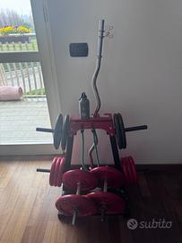✔ Inclusi bilanciere e dischi (come da foto) e porta pesi.
