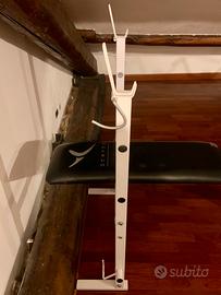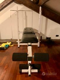 Rack integrato: Supporti per bilanciere regolabili in altezza con ganci di sicurezza (ideale per panca piana e inclinata).