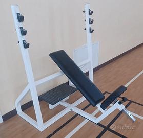 PANCA PROFESSIONALE PALESTRA FASSI SPORT USATA IDEALE PER ALLENAMENTO PETTO E SPALLE TUBI MASSICCI QUADRATI - REGOLAZIONE SEDILE - 3 LIVELLI DI APPOGGIO BILANCERE CON SICUREZZE - PEDANA PER AIUTANTE BUONE CONDIZIONI.