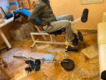 Panca per palestra in acciaio comprensiva di pesi , con manubri e bilancere