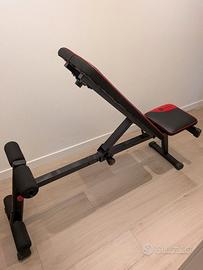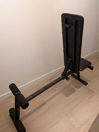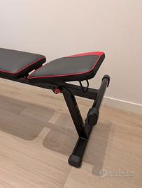 Panca palestra regolabile sia in seduta che sullo schienala. Lunghezza della seduta + schienale 115cm e larghezza circa 30cm.