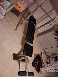 panca multifunzione della Silver con segni di usura in alcune parti le cerbici si sono scheggiate ma le imbottiture dei cuscini sono buone e la strjttura è solida