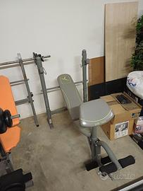 Varie panche da palestra: la prima con bilanciere e pesi per un totale di 40kg prezzo 100 euro. la seconda richiudibile e completa di lat e bilanciere e pesi per un totale di 40 kg 110 euro la terza solo panca 90 euro completa di panca bicipiti leg curl leg ext e poggia bilanciere con piu altezze. Se dovessero servire altri pesi, ne ho anche altri e vengono 1.5 euro kg quelli usati e due euro al kg quelli come nuovi.
