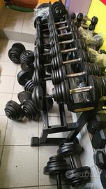 Serie manubri da 4 a 40 gommati a 1,5 euro a kg, eventualmente anche singoli manubri tondi o esagonali, Panatta, Technogym e Ivanko, rastrelliera manubri-dischi, bilanciere olimpico (150-180-200-220 cm), parallele per dips da 40 euro, Power Rack a gabbia completo da Lat Machine e pulley praticamente nuovo 350 euro , portabumper verticali da 40 euro; panca inclinabile con appoggi bilanciere da 50 euro, panca inclinabile senza appoggi da 35 euro, bilancieri da 10 euro, dischi in ghisa da 1,5 euro a kg, coppia manubri ricaricabili da 12 euro. Tatami 100x100 cm pari a nuov0 a 10 euro a pezzo. 30 pezzi 50x50x1 cm di tappeto antitrauma a 6 euro al pezzo. Inoltre: o, sacco Fitboxe da 50 euro, panca robusta multifunzione (inclinabile con panca Scott e leg curl e leg estension, lat machine e accessori) 170 euro, panca addominale da 20 euro, Tbar, Trx da 15 euro; palle mediche e Fitball di diverse misure, Step da 12 euro; Spalliera a una campata 120; Sbarra Pull up da 70 euro. sacco da boxe da 35 euro, parastinchi, paracolpi, guantoni, attrezzi di vario tipo per arti marziali, Kettlebell da 2,5 euro a kg; sand bag; ciclette da 30 euro, Spinbike da 130 euro. Tapis roulant elettrico 180 euro, Tappeto meccanico professionale da Walking 230 euro; vogatore professionale No Concept nuovo 700 euro, vogatore High Power 210 euro, set Body Pump e Body Bar. Fitness pump 30 euro, Ab Circle per addominali 40 euro, tappetino per esercizi a terra da 4 euro, Stepper 15 euro, ellittica da 50 euro, Tappetone Ginnastica 200x200x40 190 euro. Inoltre: elastici, palle da Pilates 2,5 euro, fitball, palle mediche, sacche bulgare, bumpers, pesi olimpici, microcarichi, cavigliere, panche e armadietti da spogliatoi con cappelliera e appendiabiti e tanto altro ancora.