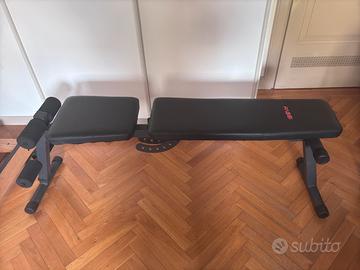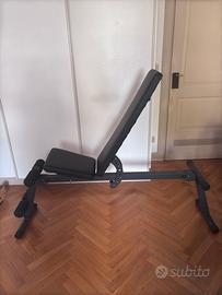 Vendo panca palestra per mancanza di utilizzo. Solo ritiro a domicilio. Panca per allenamento professionale con possibilità di ripiegare la parte posteriore per essere utilizzata anche come panca per addominali. Schienale regolabile fino a 90°. Dotata di sedile, schienale e altezza gamba frontale regolabili. Dimensioni: (Lu) 164cm, (La) 41cm, (H) da 56 a 136cm. Chiusa: h137 x 43 x 28cm Peso panca Kg.20