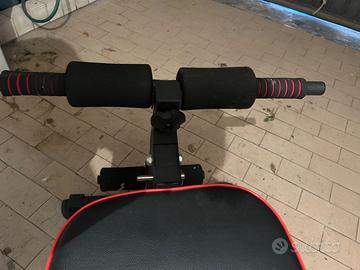 Panca pieghevole per allenamento in casa. Regolabile per panca Piana e Inclinata con 7 posizioni. Cavi inclusi per esercizi di spinta per petto e/o braccia. Condizioni discrete come in foto