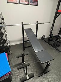 Panca da palestra regolabile in buone condizioni, ideale per allenamento domestico amatoriale.