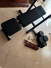 Panca per attività sportiva colore nero con schienale regolabile, pesi inclusi. Vendo per non utilizzo