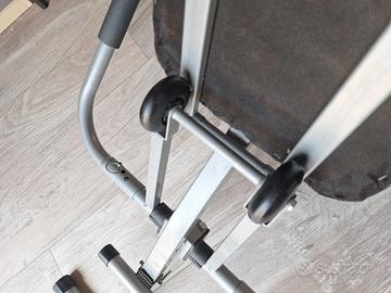 Panca per addominali progettata per allenare i muscoli addominali alti, bassi e obliqui attraverso un raggio d'azione ampio. Struttura in acciaio con supporto per la schiena e il collo per ridurre lo sforzo cervicale e lombare. Offre diversi livelli di intensità regolabili. È un modello richiudibile per occupare meno spazio quando non in uso.