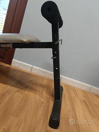Panca per addominali ( misure relative alla parte imbottita: 31cm larga, 103cm lunga) Altezza regolabile su più livelli. Rivestimento imbottito in ecopelle Ha spugne dove poggiare le gambe