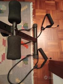 Panca reclinabile e regolabile a diverse angolazioni per addominali, con elastici per esercizi di mobilità per le braccia.