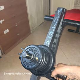 Panca in perfette condizioni per allenare gambe, addominali ecc. Completa con 8 kg di pesi.