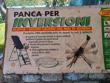 vendo per inutilizzo panca per inversione per esercizi allungamento colonna vertebrale. portata max 110kg, estensibile fino a 2.10 MT. in ottimo stato e perfettamente funzionante presenta piccoli difetti estetici (piccoli graffi, qc puntino di ruggine, una maniglia in gomma da sistemare con nastro adesivo - vedere foto) che cmq non compromettono l utilizzo.
