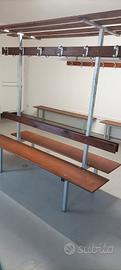 panca per spogliatoi con doppia seduta completa di porta borsoni e appendi abiti.