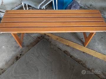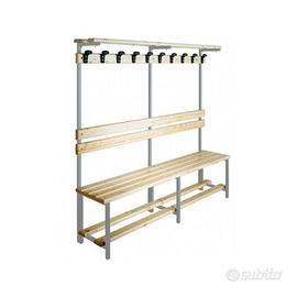 Panca per spogliatoio con alzata e doghe in legno, 6 posti. Mis 2000 L x 390 P x 1840 H mm.