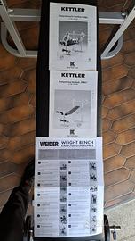Panca kettler made in germany completa di pesi . N 1 barra a vite cm 190 e n 2 bilanceri corti a vite. Con libretto istruzioni di montaggio e di utilizzo . Utilizzata poco