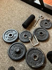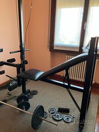 Panca multifunzione, completa di: 1 bilanciere grande 1 piccolo Kg 10x2 pz, kg 5x2 pz, kg 2x4 pz, kg 1x2pz Cintura Tappeto