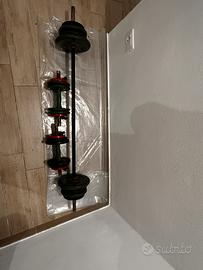 Panca piana praticamente nuova 64 kg di pesi in ghisa 1 bilanciere 2 manubri Unico blocco