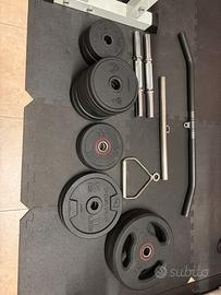 Vendo causa inutilizzo panca piana con bilancere manubri e dischi.