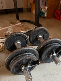Panca piana “Silver Gym by Lineaflex” + manubrio “Lineaflex” + 32kg “Lineaflex”+ 2 manubri da 10kg l’uno “Domados”