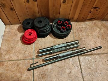 Vendo panca piana con bilanciere e pesi, circa 50 kg.