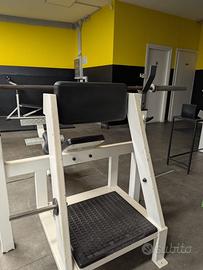 Vendo anche singolarmente panca piana e panca inclinata 30º. Panche vin porta bilanciere regolabile e pedana postetiore per spotter. Prezzo 200€ l’una