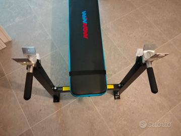 Panca pesi multifunzione ideale per allenare tutto il corpo, perfetta sia per casa che per palestra. Consente numerosi esercizi come panca piana/inclinata, press con bilanciere e manubri, addominali, allenamento gambe, dip e trazioni.