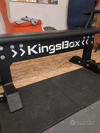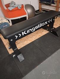 Vendo per inutilizzo panca piana kingbox perfetta, come nuova. Resistete e ad altissima portata di kg, misure standard per panca pianca professionale. Con ruote per spostarla facilmente