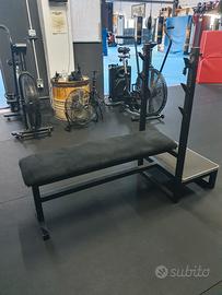 Panca piana da homegym, rivestita con tessuto per dare più attrito. Ottima per iniziare ad allenarsi e spostare i primi carichi, testata con bilanciare caricato a 110kg.