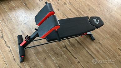 Panca piana multifunzione per pesi, manubri, addominali e lombari. Attrezzo praticamente come nuovo, acquistato recentemente ma quasi mai usato.