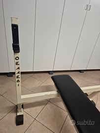 Panca piana OEMMEBI, molto robusta. Può anche essere smontata rimuovendo 4 bulloni (come da foto) per ridurne l'ingombro durante il trasporto. No perditempo, grazie