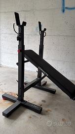 Panca piana regolabile fino a 30 gradi, puoi alzare o abbassare l’altezza per il bilanciere a tuo piacimento