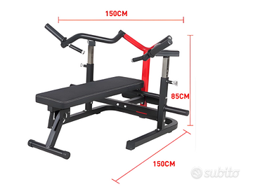 Supporta 100kg a lato per un totale di 200kg caricabili, può essere messa anche inclinata per allenare il petto alto, puoi allenare anche l'addome e il dorso o trapezio.