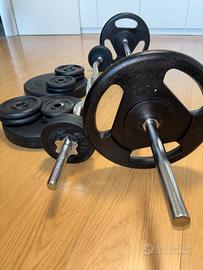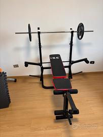 Vendo panca miltifunzione per allenamento da casa, compresa di tutti i pesi come da foto, manubri e pavimento 4 m² (mai usato) Solo ritiro non spefisco