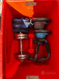 Vendo panca piana professionale Technogym con supporto, incluso bilancere tradizionale + bilancere Ez, disponibili anche i pesi in foto
