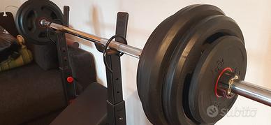 Panca reclinabile CORENGTH completa di bilanciere da 10 kg.,dischi gommati tot.45kg (2x10kg,4x5kg,2x2.5kg)+fermadischi ,regolazione altezza bilanciere, come nuova,ritiro in loco.