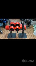 Insieme o apparte vendo anche pesi con manubri componibili per un totale di 40kg assieme alla struttura di ferro fatta realizzare appositamente per sorreggere i manubri.