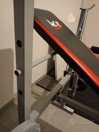 Panca reclinabile in 4 posizioni, con osa bilanciere per panca piana, manubri laterali e davanti per femorali, con bilanciere incluso, se non lo si vuole caliamo il prezzo.. nessun difetto