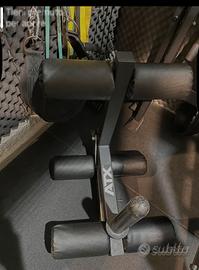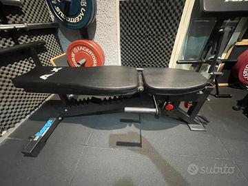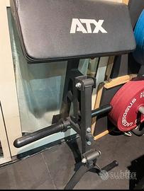Vendo panca regolabile ATX in ottime condizioni ha solo la scritta leggermente scolorita ma la pelle è perfetta è qualche segno di ruggine sul piedistallo posteriore(difetto comune di fabbrica ) la panca è regolabile da -12 gradi a +82 gradi circa 12 regolazioni e la seduta a 5 regolazioni inoltre è possibile Alloggiare nella parte anteriore gli accessori che vendo insieme leg extension/leg curl , panca scott,tutto a carico dischi..il prezzo è leggermente trattabile ..non regalo ..no. Perditempo grazie.