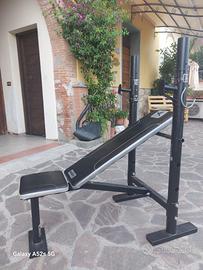 Vendo panca regolabile Domyos BM120 regolabile usata ma in buone condizioni + bilanciere 8 Kg (30mm). Non vendo pesi.