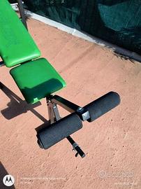 Vendo panca regolabile con schienale inclinabile su più livelli con porta bilanciere, bilanciere e pesi.