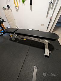TOORX WBX2200 Regolabilità Estrema: Lo schienale è regolabile in 8 posizioni, permettendo di passare da panca piana a un'inclinazione di 90 gradi per esercizi come il military press. Anche il sedile è regolabile per garantire il massimo comfort ed evitare stress alla curva lombare. Struttura Robusta: Realizzata con tubolari in acciaio a sezione ovale (100x50 mm) e uno spessore di 3 mm, che assicura una stabilità superiore durante il sollevamento di carichi pesanti. Capacità di Carico: Supporta un peso massimo dell'utilizzatore di 135 kg e un carico totale (utente + pesi) fino a 265 kg. Alcuni rivenditori professionali indicano una portata strutturale complessiva ancora più alta per utilizzi specifici. Comfort e Praticità: La cuscineria ha uno spessore generoso di 65 mm per un supporto ottimale. È dotata di ruote e maniglia di trasporto integrate per facilitare lo spostamento all'interno dell'area di allenamento
