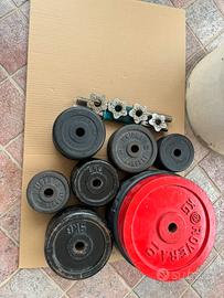 Panca comreda di 2 manubri, un bilanciere, 4 pesi da 10kg, 4 pesi da 5kg, 12 pesi da 2kg, 8 pesi da 1kg