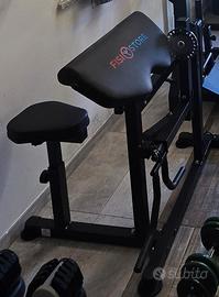 panca scott a carico guidato fino a 100kg ok dischi diametro 25/28 mm e olimpionici. sellino regolabile .allenamento bicipiti e tricipiti .