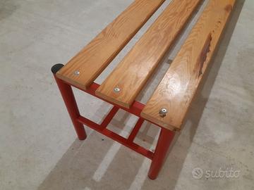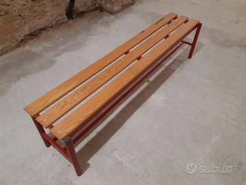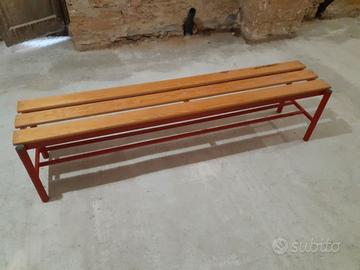 Panca per spogliatoio in ottime condizioni. La seduta è stata accorciata di qualche centimetro alle estremità per esigenze di spazio. Lunghezza 190 cm.