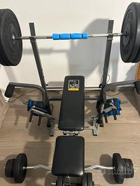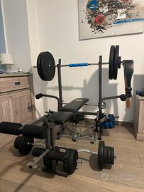 Panca 2 bilanceri 2 manubri 1 fitness pump pesi dischi gommati 80 kg pesi a strappo in sabbia 10 kg tutto come nuovo