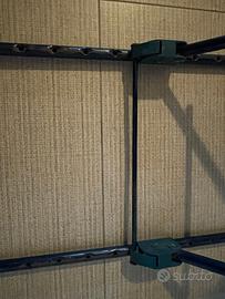In alcuni punti la fodera presenta dei tagli e necessita di essere sistemata; è inoltre presente una lieve ossidazione superficiale in corrispondenza dei fori di regolazione dell’altezza.